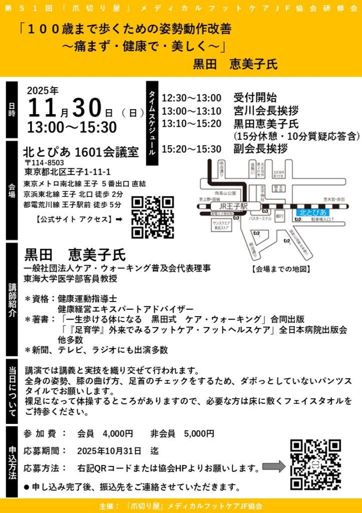 2025年11月30日(日)第51回研修会 フットケア講演会のお知らせ