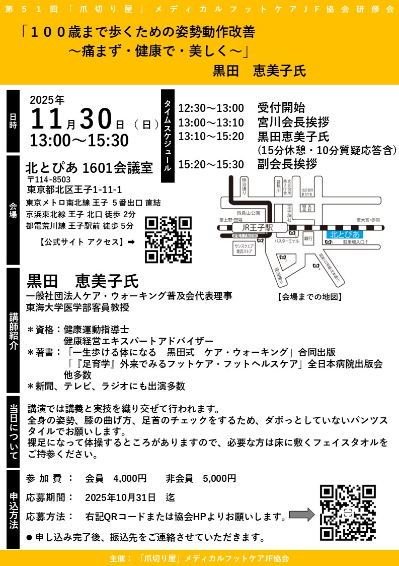 2025年11月30日(日)第51回研修会 フットケア講演会のお知らせ